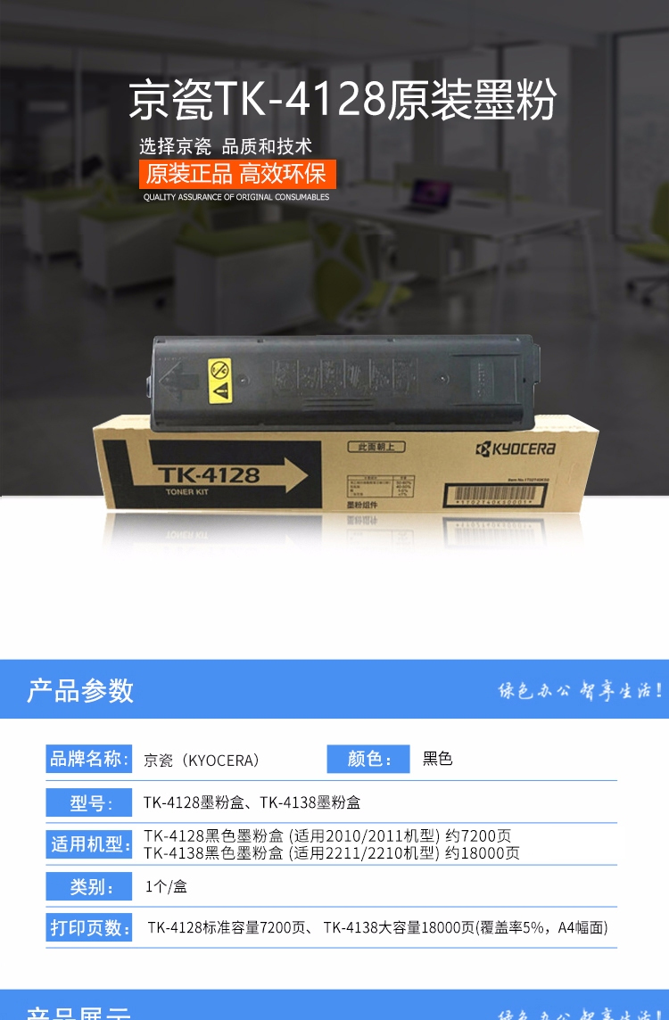 京瓷(KYOCERA) TK-4128 黑色墨粉盒 (适用2010 2011机型) 约7200页 原装
