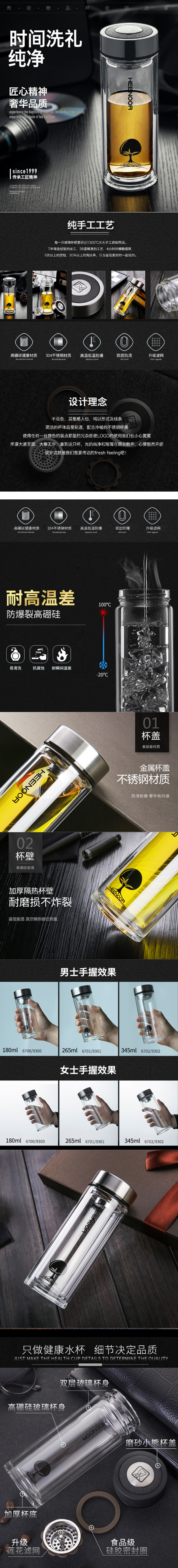 希诺(heenoor) 6701玻璃杯265ML双层便携透明隔热男士办公室无铅茶水杯