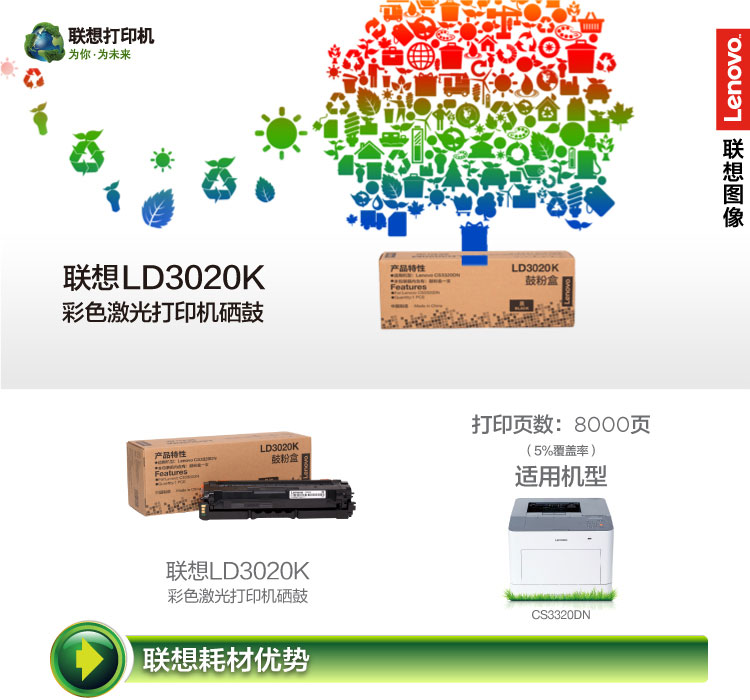 联想(Lenovo) LD3020K 黑色原装硒鼓(适用于CS3320DN彩色激光打印机) 政府采购品