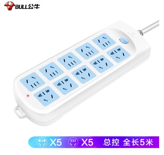 公牛(BULL) 新国标插座/插线板/插排/排插/接线板/拖线板 10位总控全长5米超功率保护 GN-605