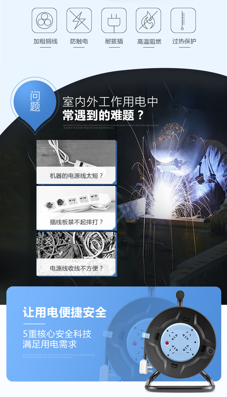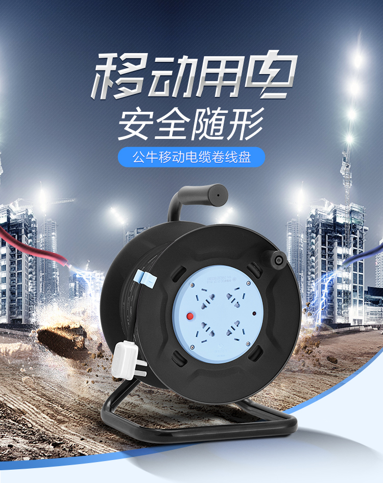 公牛(BULL) 卷线盘,国标4平方50米工程接线/移动电缆电线盘工地盘插