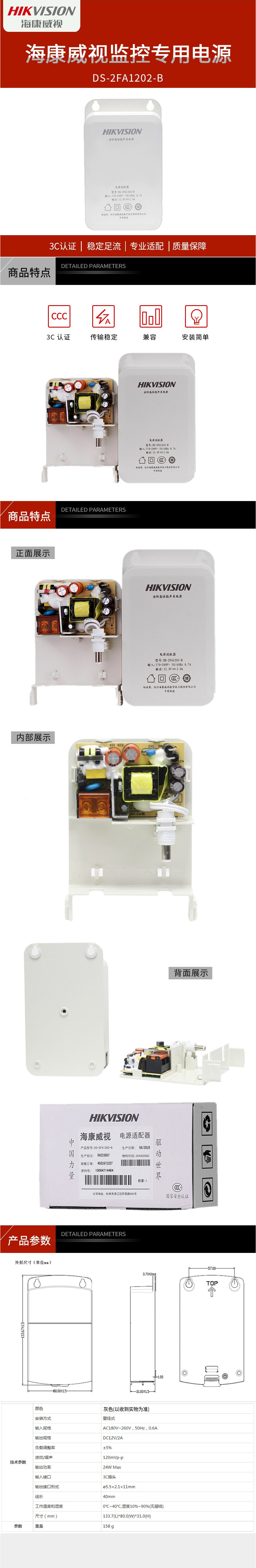 海康威视(HIKVISION) DS-2FA1202-B 12V防水监控电源