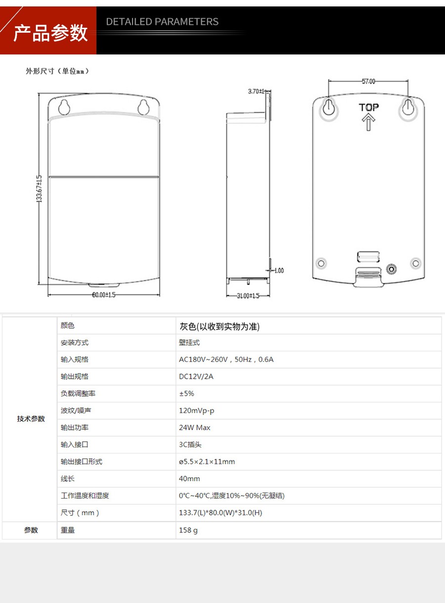 海康威视(HIKVISION) DS-2FA1202-B 12V防水监控电源