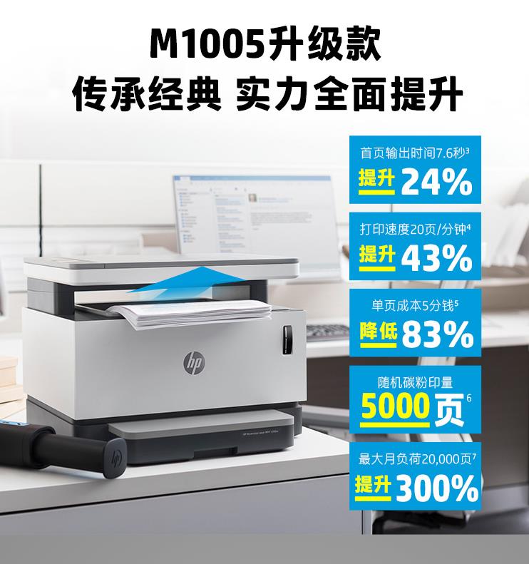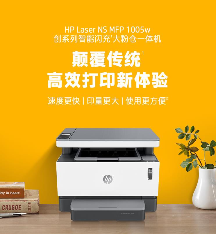 惠普(HP) 创系列NS1005w 智能闪充大粉仓一体机 无线打印复印扫描