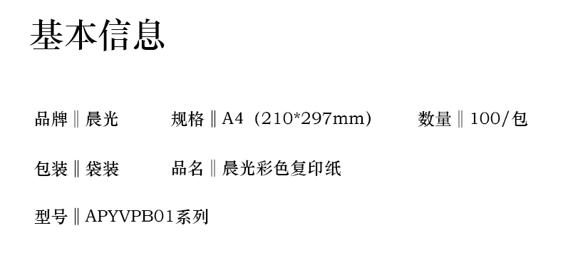 晨光(MG) APYVPB01 彩色复印纸 80g 100张/包