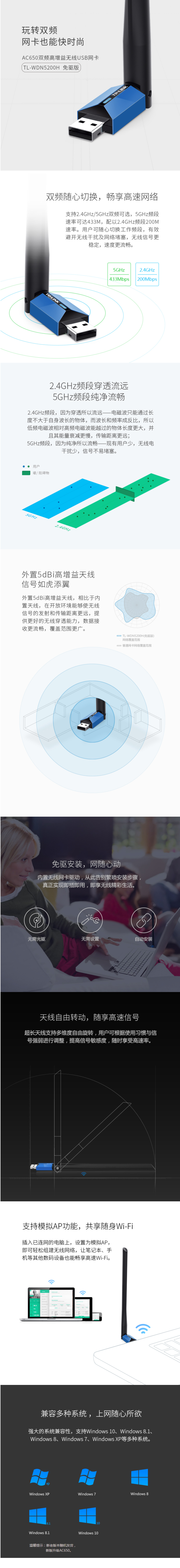普联(TP-LINK) TL-WDN5200H免驱版 650M 双频USB无线网卡