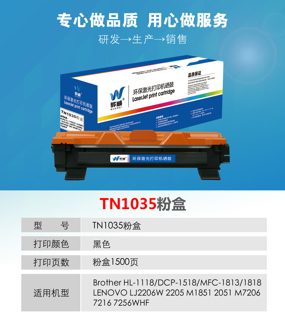 骅威 TN1035 粉盒 适用兄弟 DCP-1608 1618W HL-1208 MFC 1919NW 1908 lenovo M7206 7216 LJ2205 打印机墨盒