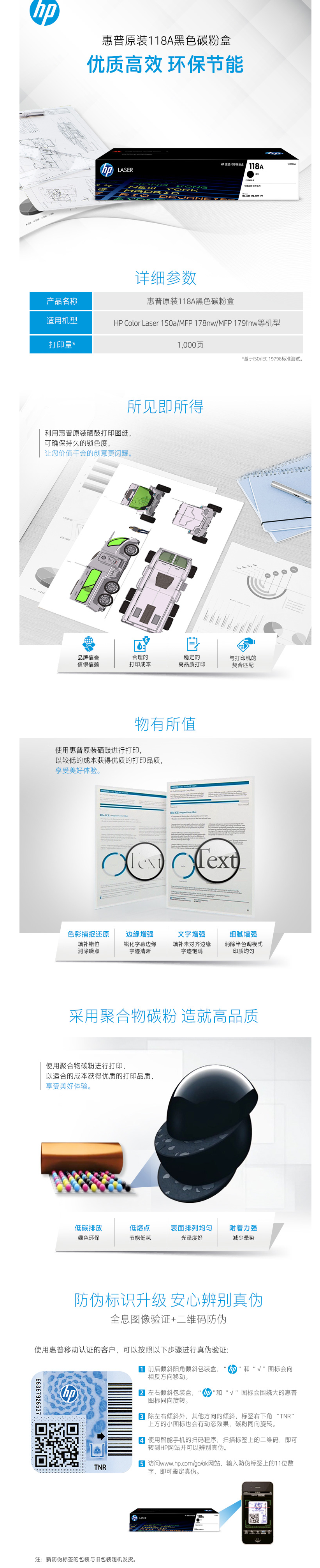 惠普(HP) 118A(W2080A)原装硒鼓黑色单支装(适用hp 150a/w 178nw 179fnw)